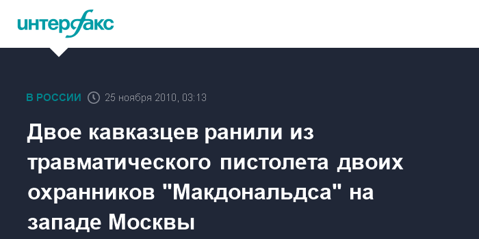 Двое кавказцев ранили из травматического пистолета двоих охранников "Макдональдса" на западе Москвы
