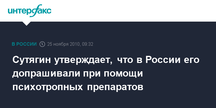 Сутягин утверждает, что в России его допрашивали при помощи психотропных препаратов