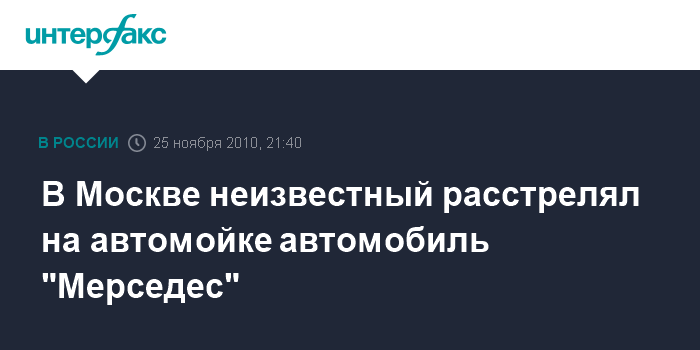 Как сообщил "Интерфаксу" источник в правоохранительных органах, около 20:50 четверга неизвестный преступник на автомойке расстрелял из автомата Калашникова "Мерседес", в котором находился 25-летний водитель. Отстрелявшись, преступник бросил оружие на месте происшествия и скрылся.