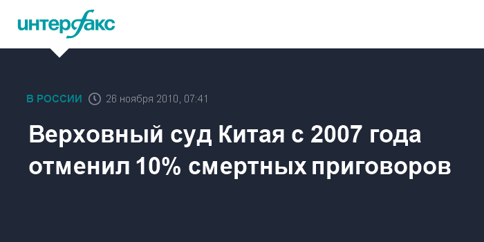 Верховный суд Китая с 2007 года отменил 10% смертных приговоров