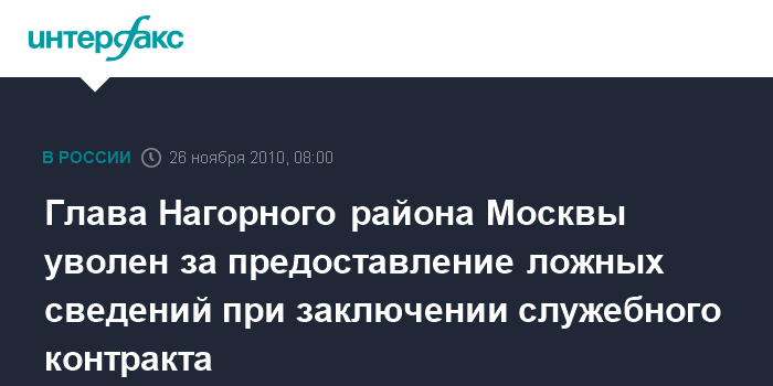Глава Нагорного района Москвы уволен за предоставление ложных сведений при заключении служебного контракта