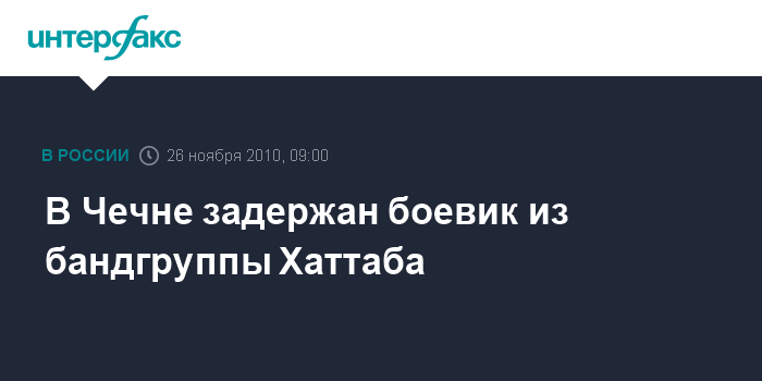 Москва. 25 ноября. INTERFAX.RU - Участник банды Хаттаба задержан в Чечне, сообщил "Интерфаксу" источник в правоохранительных органах.