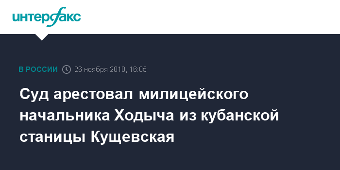 Суд арестовал милицейского начальника Ходыча из кубанской станицы Кущевская