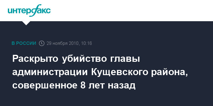 Раскрыто убийство главы администрации Кущевского района, совершенное 8 лет назад