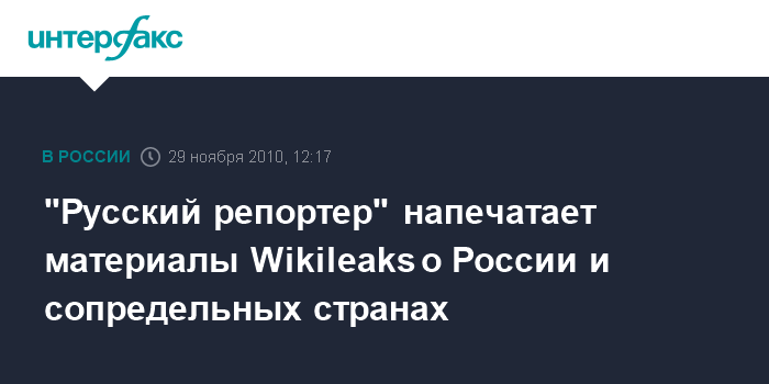 По словам собеседника агентства, "Русский репортер" запросил у Wikileaks материалы, касающиеся России и сопредельных стран.
