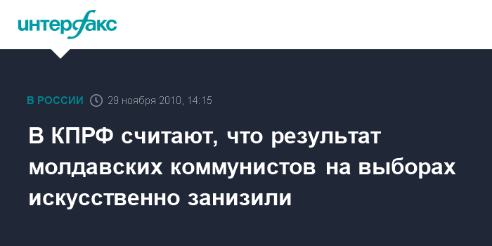 Вице-спикер Государственной думы, первый зампред ЦК КПРФ Иван Мельников в разговоре с "Интерфаксом" выразил желание "поздравить Партию коммунистов Молдавии с убедительной победой", но все же сообщил, что считает результат, полученный коммунистами, искусственно заниженным властями. "Реальная поддержка их у избирателей выше", - подчеркнул Мельников.