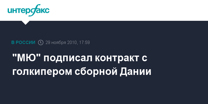 Москва. 29 ноября. INTERFAX.RU – Футбольный клуб "Манчестер Юнайтед" подписал трехлетний контракт с вратарем сборной Дании Андерсом Линдегором.