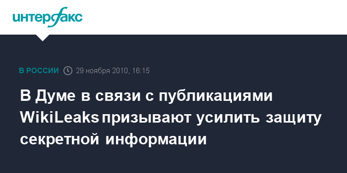 В Думе в связи с публикациями WikiLeaks призывают усилить защиту секретной информации