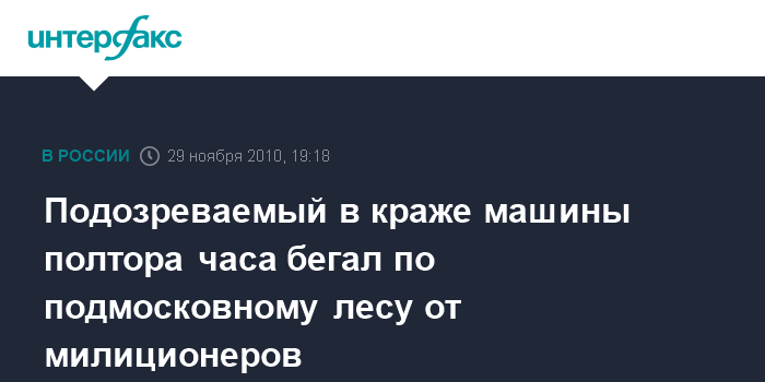 Москва. 29 ноября. INTERFAX.RU - Подмосковные автоинспекторы полтора часа ловили подозреваемого в угоне, который бегал от них по лесу, сообщили "Интерфаксу" в пресс-службе управления ГИБДД по Московской области в понедельник.