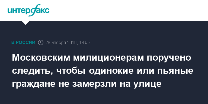 Московским милиционерам поручено следить, чтобы одинокие или пьяные граждане не замерзли на улице