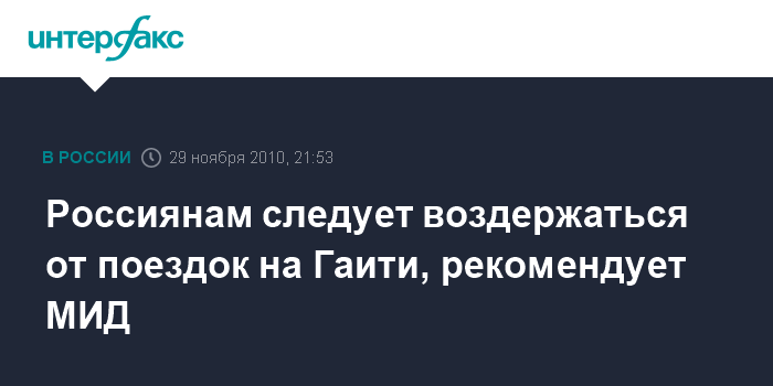 "МИД России считает целесообразным рекомендовать российским гражданам, планирующим выезд в Гаити, временно воздержаться от туристических и деловых поездок в эту страну до нормализации эпидемиологической ситуации", - говорится в сообщении, размещенном на сайте ведомства.