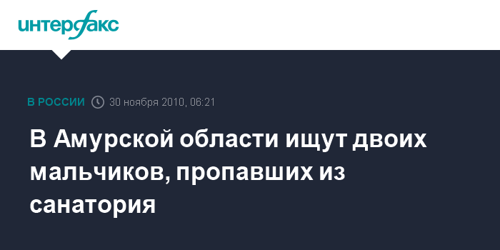 Хабаровск. 30 ноября. ИНТЕРФАКС-ДАЛЬНИЙ ВОСТОК - Двоих восьмилетних воспитанников Поярковского дома-интерната разыскивают в Амурской области спасатели и милиция.