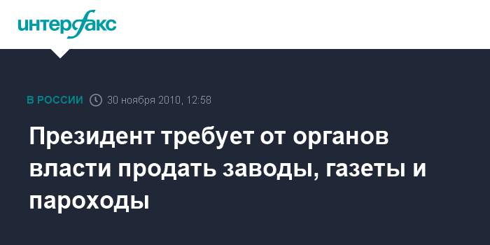 Президент требует от органов власти продать заводы, газеты и пароходы