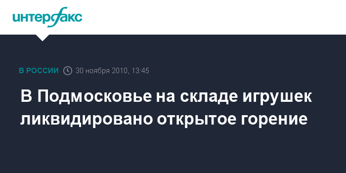 Москва. 30 ноября. INTERFAX.RU - В подмосковном Одинцове на складе с детскими игрушками, где во вторник утром произошел пожар, ликвидировано открытое горение, сообщила "Интерфаксу" глава управления информации и общественных связей областного МЧС Светлана Анатольева.