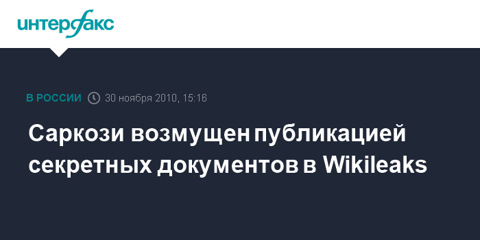 Саркози возмущен публикацией секретных документов в Wikileaks