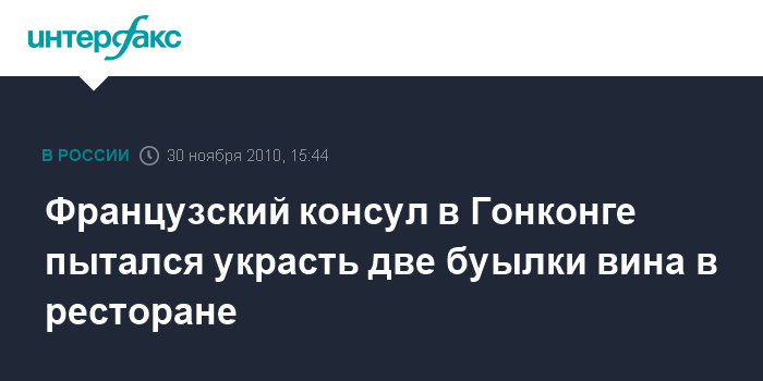 Французский консул в Гонконге пытался украсть две буылки вина в ресторане