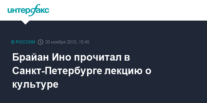 Брайан Ино прочитал в Санкт-Петербурге лекцию о культуре