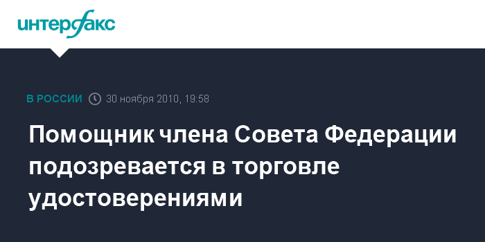Помощник члена Совета Федерации подозревается в торговле удостоверениями