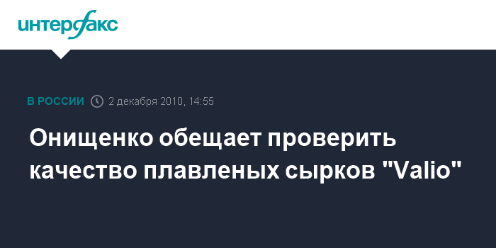 Москва. 2 декабря. INTERFAX.RU - Глава Роспотребнадзора Геннадий Онищенко недоволен качеством плавленых сырков фирмы "Valio" и намерен провести специальное разбирательство.
