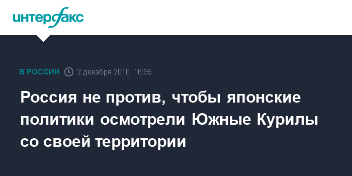Москва. 2 декабря. INTERFAX.RU - В Москве не возражают против того, чтобы японское руководство полюбовалось красотами Южных Курил со своей территории.