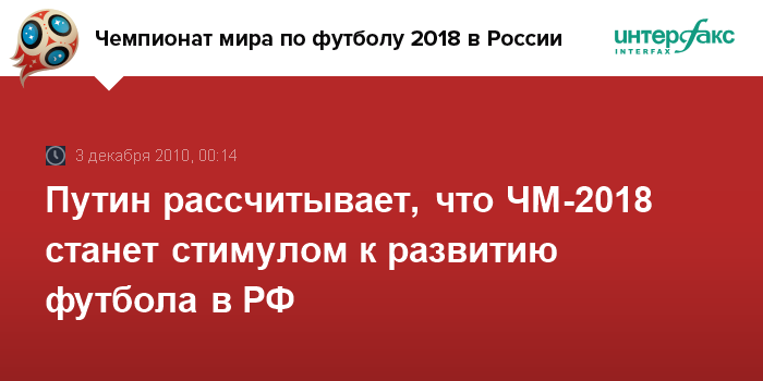 Путин рассчитывает, что ЧМ-2018 станет стимулом к развитию футбола в РФ