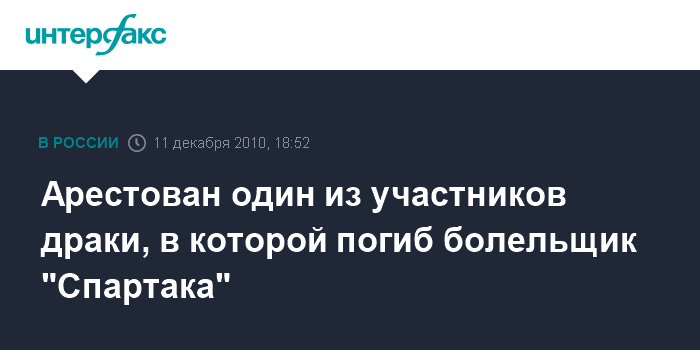 Арестован один из участников драки, в которой погиб болельщик "Спартака"