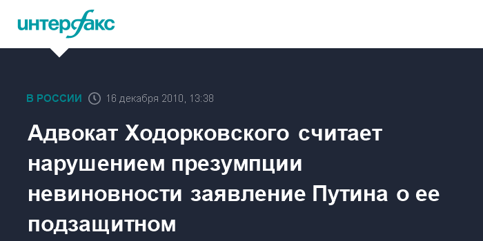 Адвокат Ходорковского считает нарушением презумпции невиновности заявление Путина о ее подзащитном