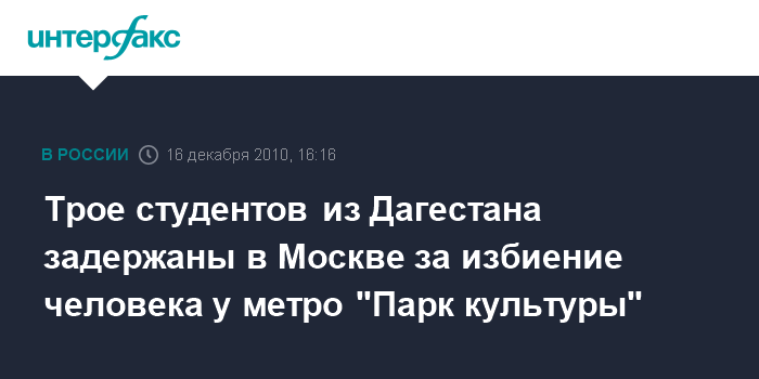 Трое студентов из Дагестана задержаны в Москве за избиение человека у метро "Парк культуры"