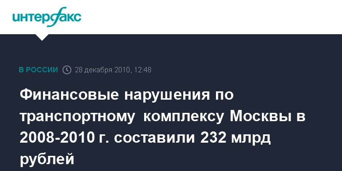 Финансовые нарушения по транспортному комплексу Москвы в 2008-2010 г. составили 232 млрд рублей