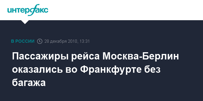 Пассажиры рейса Москва-Берлин оказались во Франкфурте без багажа