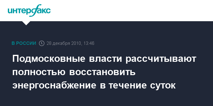 Красногорск. 28 декабря. INTERFAX.RU - Электричество в населенных пунктах Подмосковья планируется восстановить за сутки, заявил заместитель председателя правительства Московской области Василий Громов.