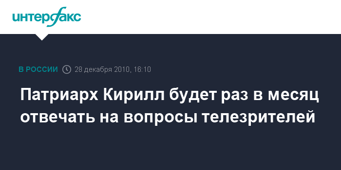 Патриарх Кирилл будет раз в месяц отвечать на вопросы телезрителей