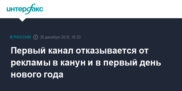 Москва. 28 декабря. INTERFAX.RU - 31 декабря и 1 января на Первом канале полностью не будет рекламы.