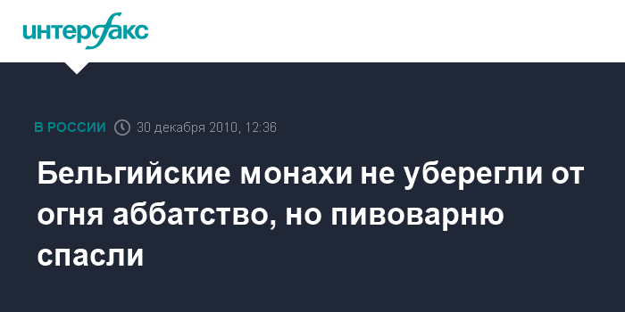 Лондон. 30 декабря. INTERFAX.RU - Монахам-цистерцианцам удалось спасти запасы редкого пива при пожаре в средневековом аббатстве Нотр Дам де Сен-Реми-Рошфор на юге Бельгии, сообщает в четверг британская телерадиокорпорация BBC.