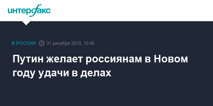 Москва. 31 декабря. INTERFAX.RU - Премьер-министр РФ Владимир Путин пожелал россиянам в Новом году роста материального благосостояния, счастья и удачи.