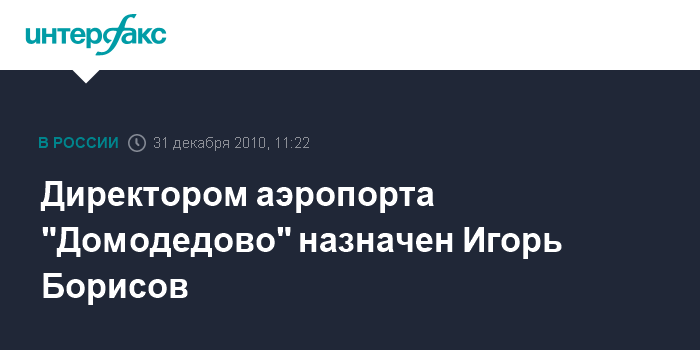 Директором аэропорта Домодедово стал Игорь Борисов, ранее занимавший должность управляющего директора "Домодедово Пэссенджер Терминал" (аэровокзального комплекса Домодедово).