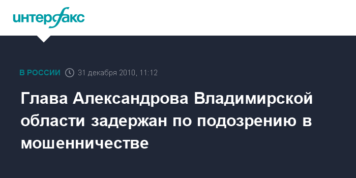 Глава Александрова Владимирской области задержан по подозрению в мошенничестве
