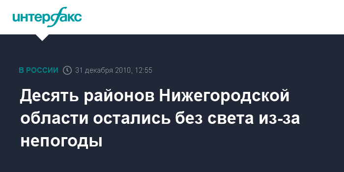 Нижний Новгород. 31 декабря. INTERFAX.RU - В Нижегородской области в пятницу снежный циклон стал причиной отключения электроснабжения в 10 районах юга и центра региона, сообщает МЧС РФ