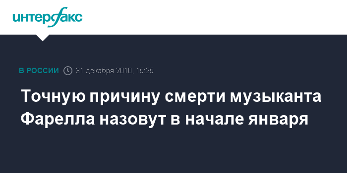 Точную причину смерти музыканта Фарелла назовут в начале января