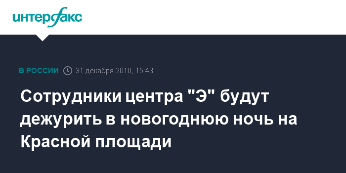 Москва. 31 декабря. INTERFAX.RU - Сотрудники столичного центра по противодействию экстремизму (центр "Э") в новогоднюю ночь будут нести дежурство в центре Москвы, в том числе на Красной площади, с целью предотвращения столкновений между молодежными группами, сообщил "Интерфаксу" в пятницу источник в правоохранительных органах.