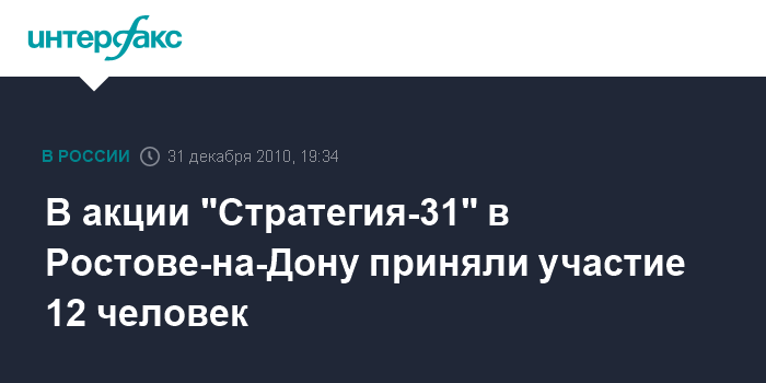 Ростов-на-Дону. 31 декабря. INTERFAX.RU - В акции общественного движения "Стратегия-31", состоявшейся в районе парка Горького в городе Ростов-на-Дону, приняли участие 12 активистов.