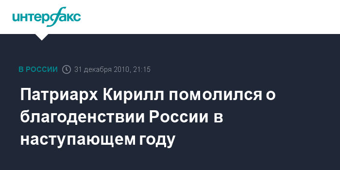 Москва. 31 декабря. INTERFAX.RU - Патриарх Московский и всея Руси Кирилл в пятницу вечером совершил в храме Христа Спасителя молебен о даровании мира и благоденствия России в наступающем Новом году.