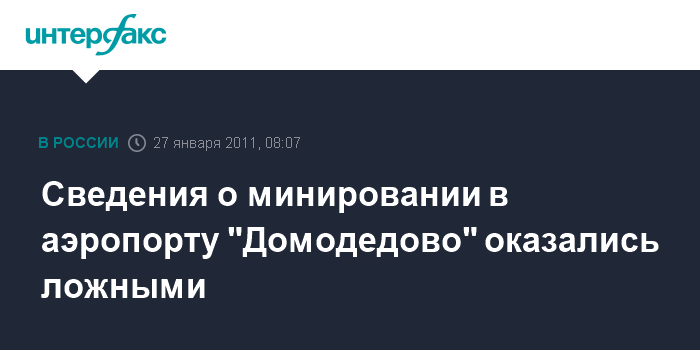 Москва. 27 января. INTERFAX.RU - Милиция завершила поздно вечером осмотр аэропорта "Домодедово", никаких подозрительных предметов не обнаружено, сообщил "Интерфаксу" источник в правоохранительных органах.