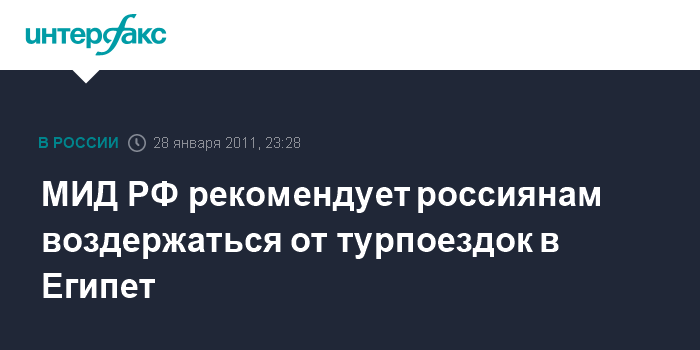 МИД РФ рекомендует россиянам воздержаться от турпоездок в Египет