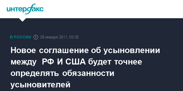 Вашингтон. 29 января. ИНТЕРФАКС - Соглашение между Россией и США об