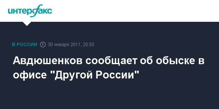 Москва. 30 января. ИНТЕРФАКС - Правоохранительные органы проводят обыск в доме лидера московского отделения незарегистрированной партии "Другая Россия", а также в офисе организации.
