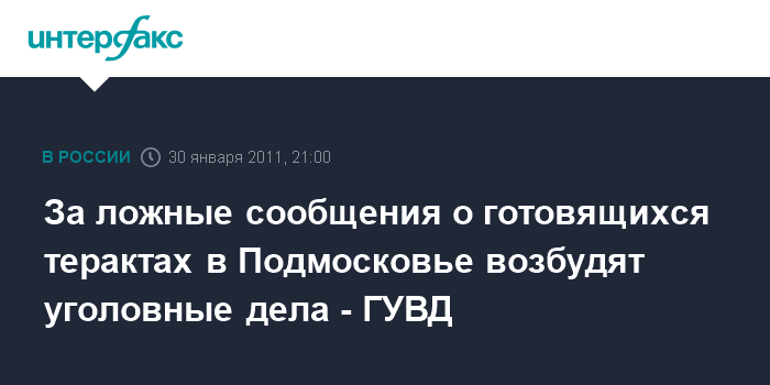 За ложные сообщения о готовящихся терактах в Подмосковье возбудят уголовные дела - ГУВД