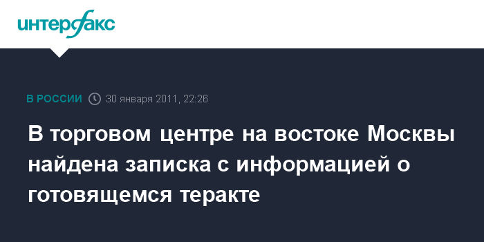 В торговом центре на востоке Москвы найдена записка с информацией о готовящемся теракте
