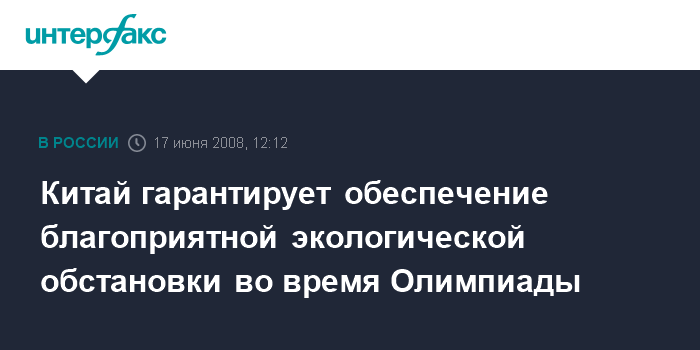 Китай гарантирует обеспечение благоприятной экологической обстановки во время Олимпиады