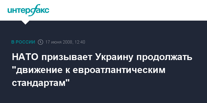 Киев. 17 июня. INTERFAX.RU - Представители стран НАТО призывают Украину продолжать движение к евроатлантическим стандартам.